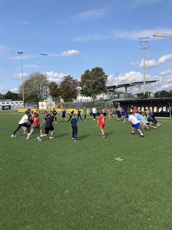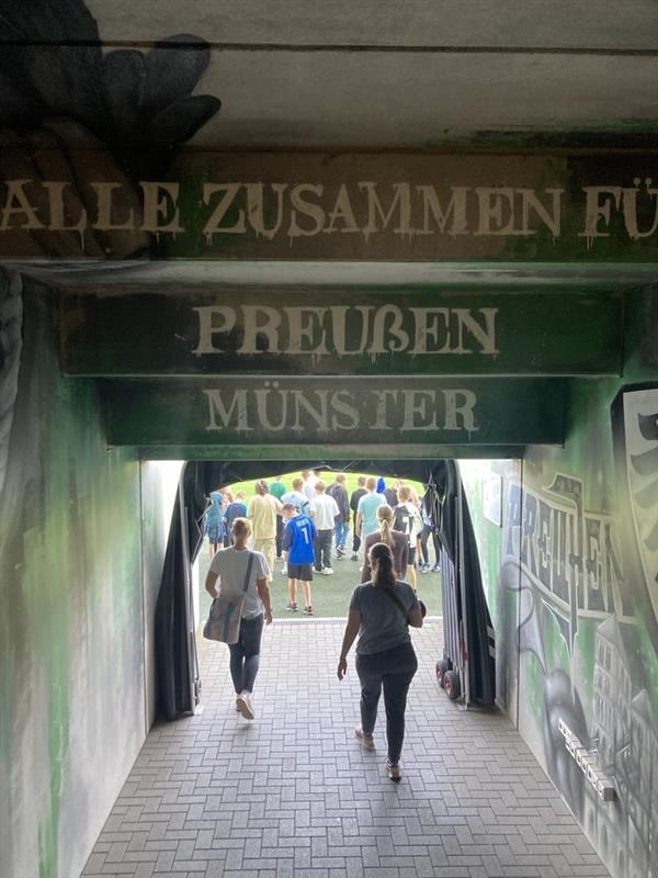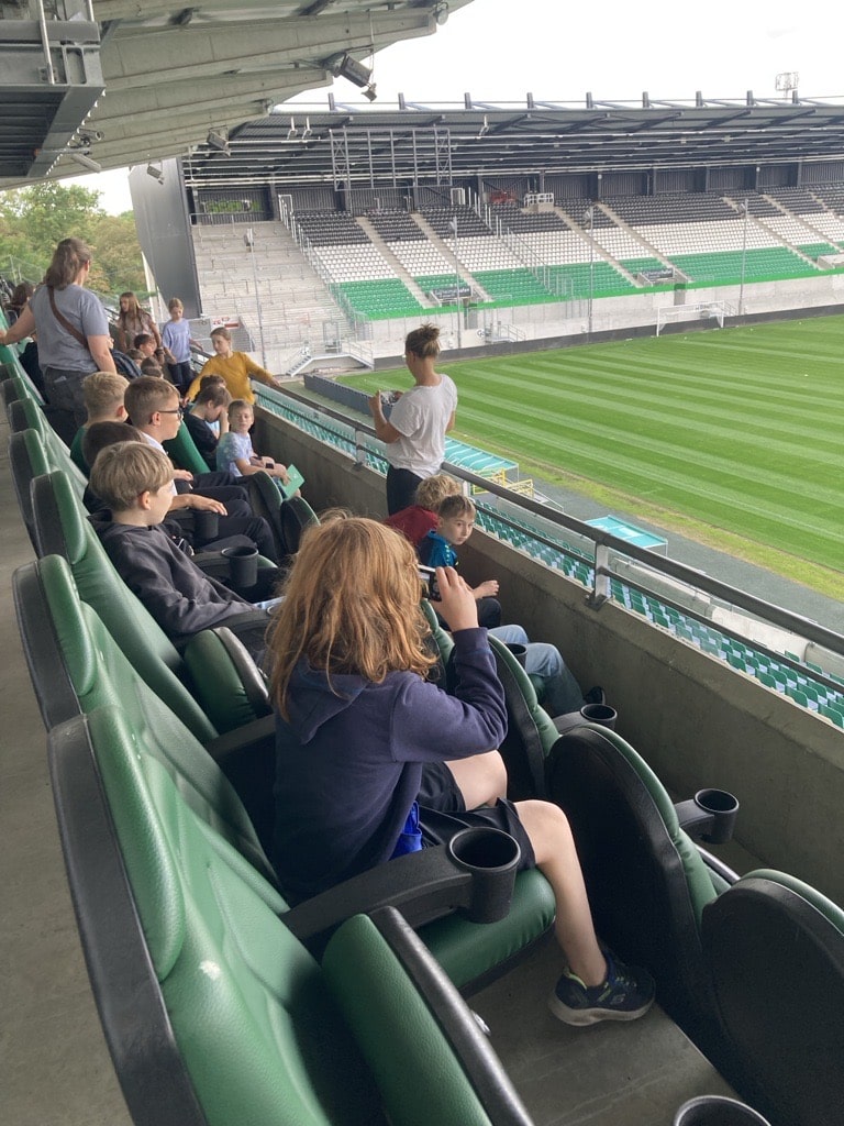 Die Klassen 6.1 und 6.2 verschlug es nach Münster. Dort wartete ein abwechslungsreiches Programm: Im Preußenstadion stand eine Stadionführung auf dem Plan – inklusive eines besonderen Moments, als die Kinder sogar die Profis trafen, abklatschen durften und selbst eine Trainingseinheit auf dem Rasen absolvierten. Wer lieber Kunst erleben wollte, kam beim LWL-Museum voll auf seine Kosten: Hier wurden in einem Workshop kreative Werke gestaltet. Zum Abschluss des Tages machten sich alle gemeinsam mit Taschenlampen und Ortungsgeräten auf eine Fledermauswanderung am Aasee. Die Beobachtung der kleinen Nachtjäger war für viele ein unvergessliches Erlebnis.